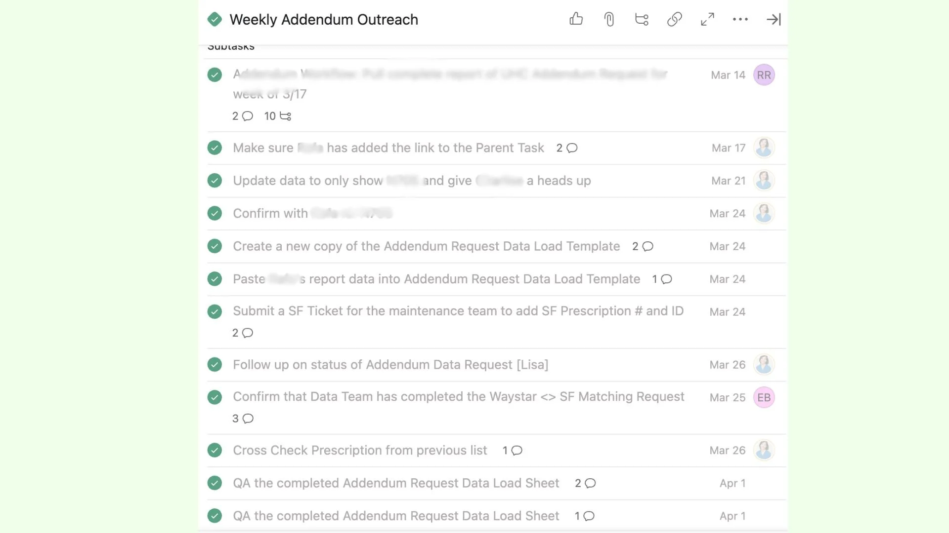 Built an Asana task to capture the end-to-end workflow that can be duplicated each week.